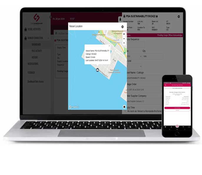 - Access to real-time location of a mother vessel and a bunker barge within port limits using Automatic Identification System (AIS).